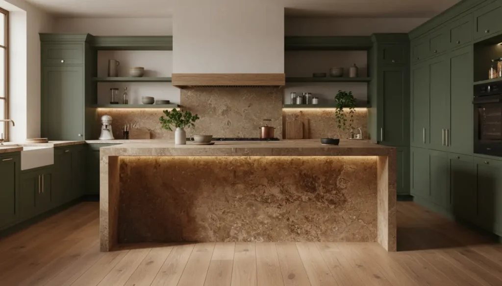 3. The Travertine Altar (Warm Minimalism)